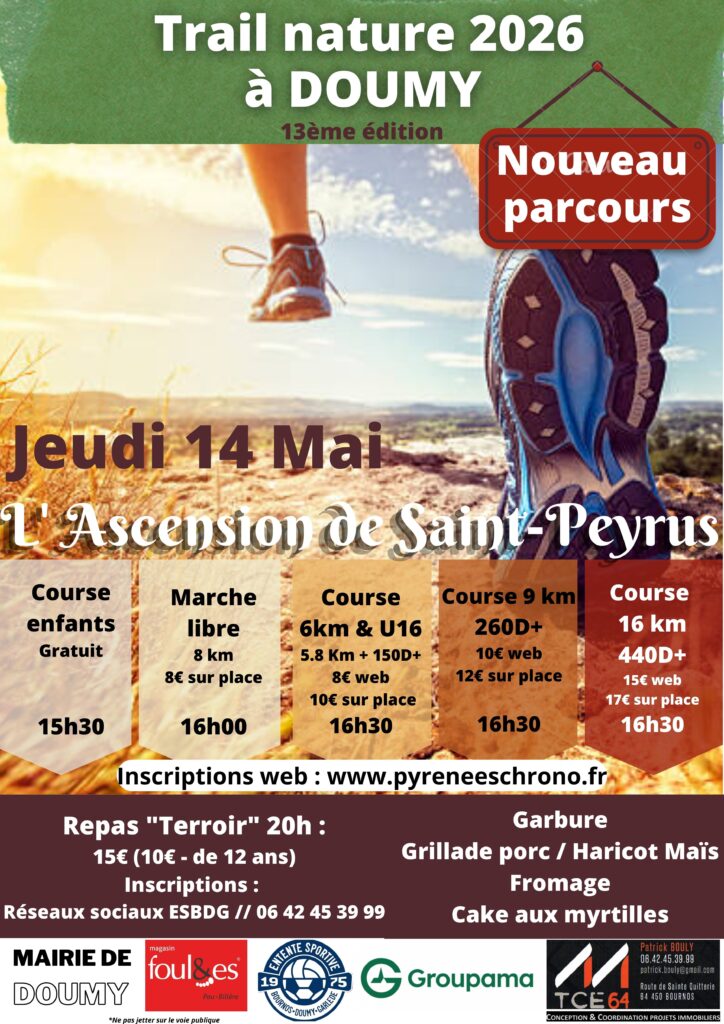 Pour la 13e année, le jeudi 14 mai 2026, l’ESBDG vous propose un 5 parcours dans la nature à DOUMY avec un nouveau parcours découverte.
