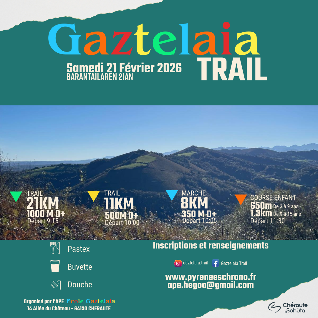 Préparez vos chaussures de trail et votre bonne humeur : le Gaztelaia Trail revient à Chéraute le 21 février 2026 !