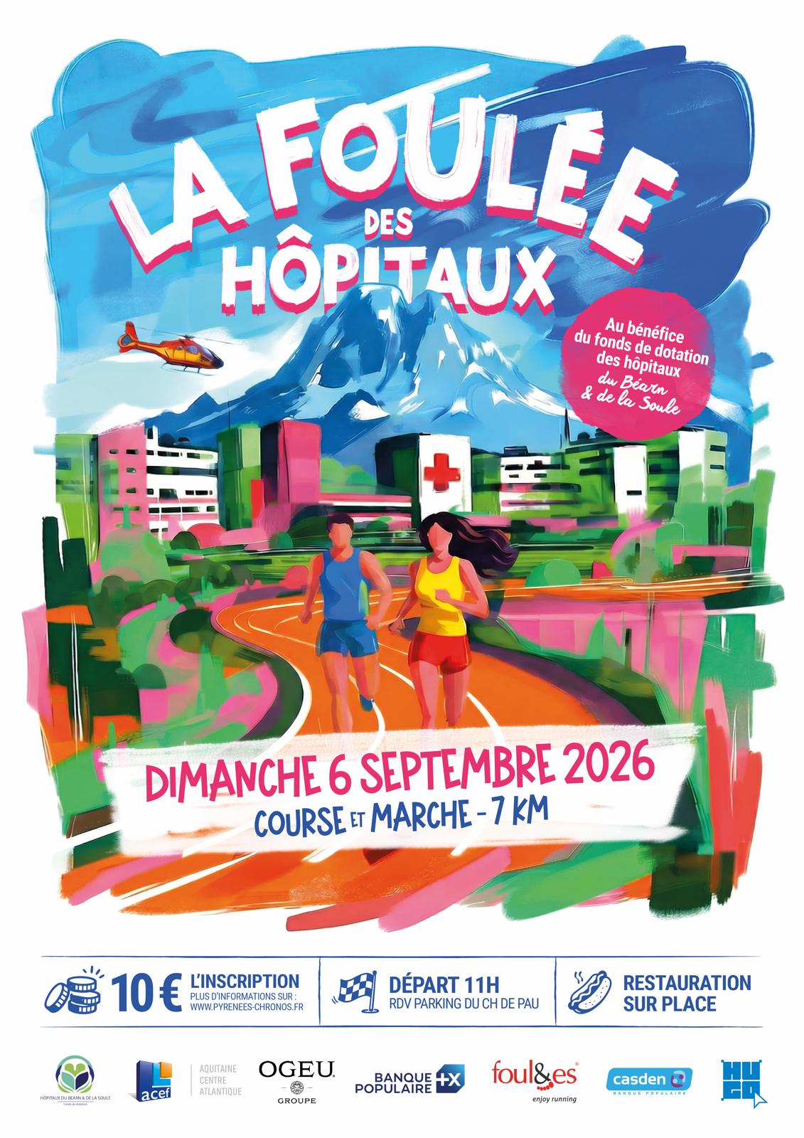 La foulée des hôpitaux est une course et une marche pédestre de 7kms organisée par le Fonds de dotation des Hôpitaux du Béarn et de la Soule avec le soutien de professionnels hospitaliers et des mécènes privés.