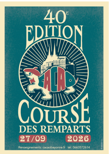 40ème COURSE DES REMPARTS BAYONNE ! La peña CACAO est très satisfaite de vous présenter la 40e édition de la Course des Remparts qui a eu lieu le 27 septembre 2026. Un parcours de 10kms qui vous propose de découvrir les plus belles rues du Vieux Bayonne, ses douves et ses remparts. Les coureurs boucleront […]