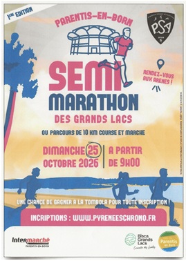 Le Parentis Sport Athlétisme organise le premier semi marathon des grands lacs. Un 10 km et un 10 km marche sont également proposés aux athlètes. Le parcours mets en valeur le territoire Landais avec sa forêt, le lac et les arènes de Parentis. Un parcours également pensé pour la performance avec très peu de dénivelé.
